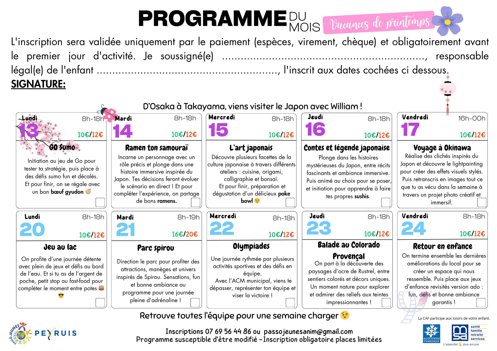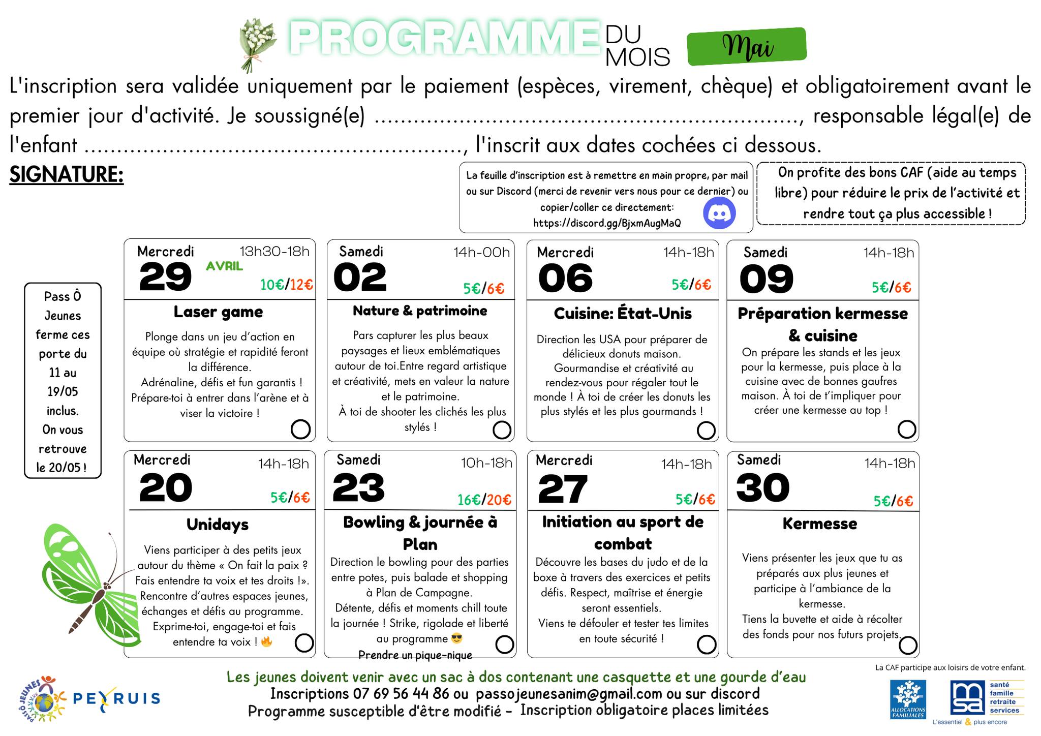 - ACM (Accueil Collectif de Mineur) pour les jeunes de 11 à 17 ans.